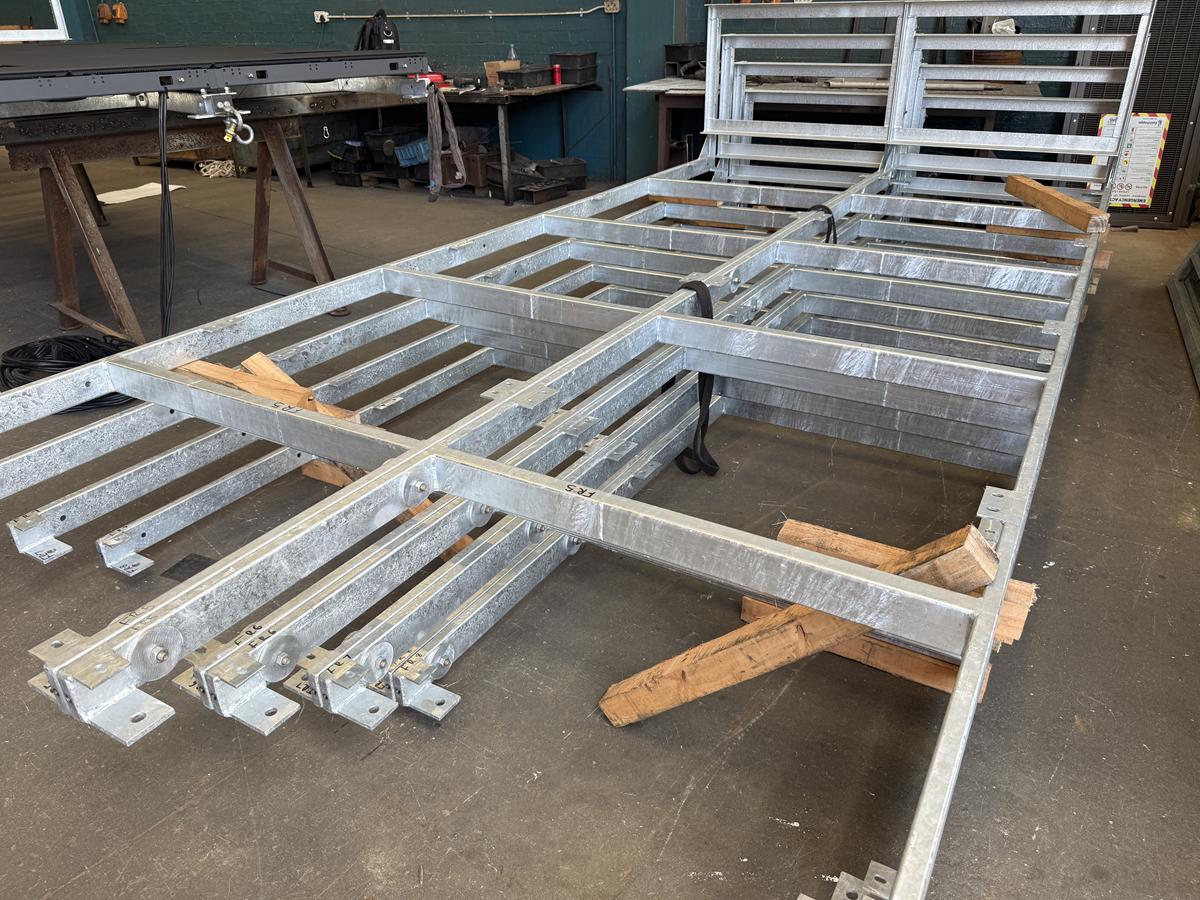 Beneath the screen, galvanised grating platforms were fabricated and installed to provide safe rear access for servicing. These were supported by individual welded angle sections integrated directly into the primary frame.