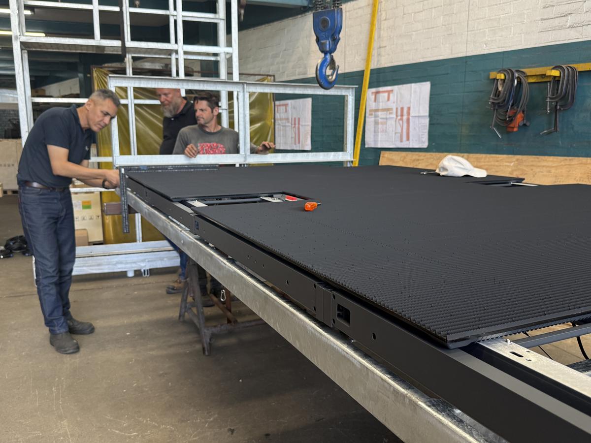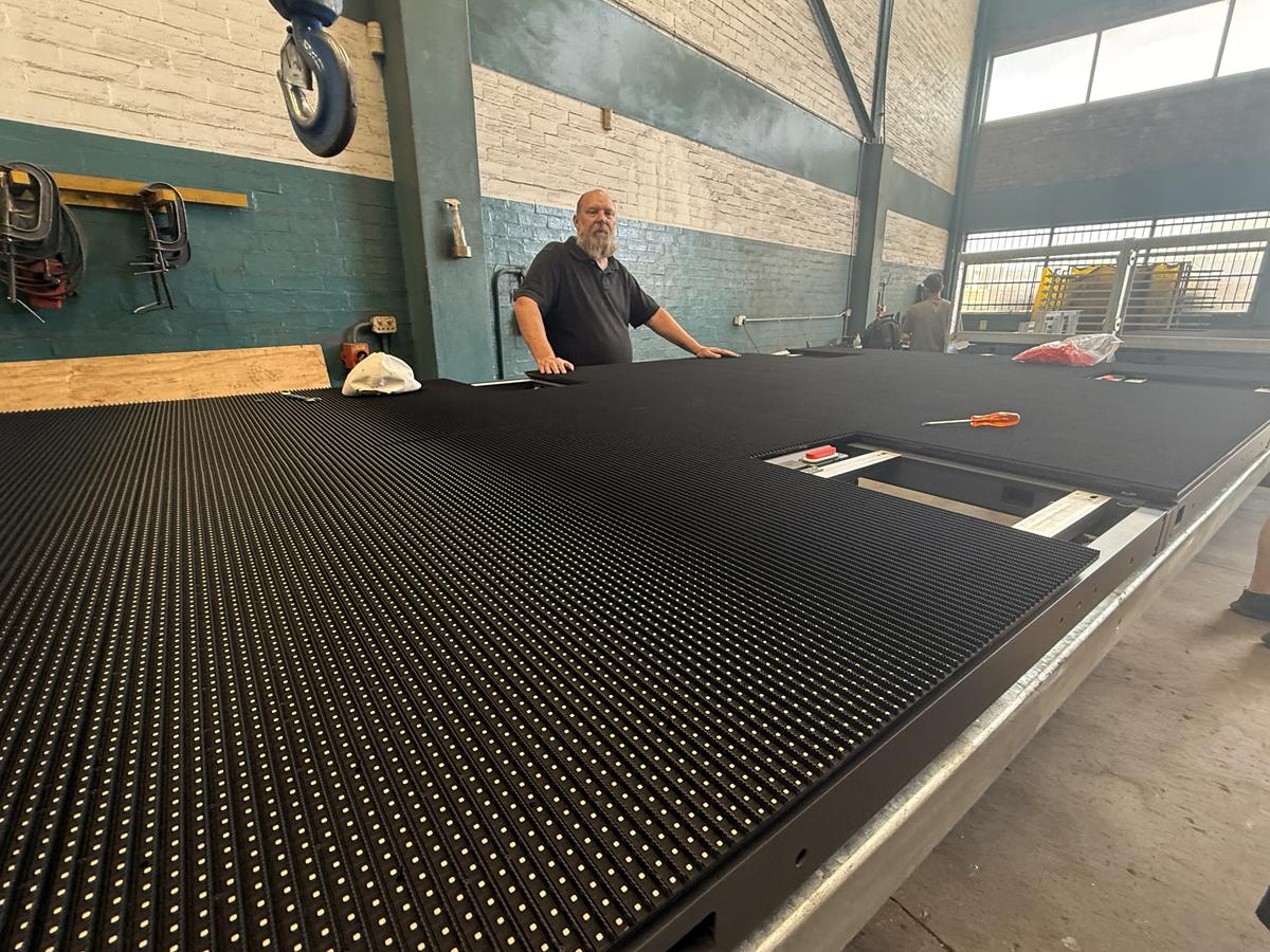 Each cabinet was aligned and secured to ensure seamless visual continuity across the display surface. Power and data cabling were integrated and routed with consideration for serviceability and long-term reliability.