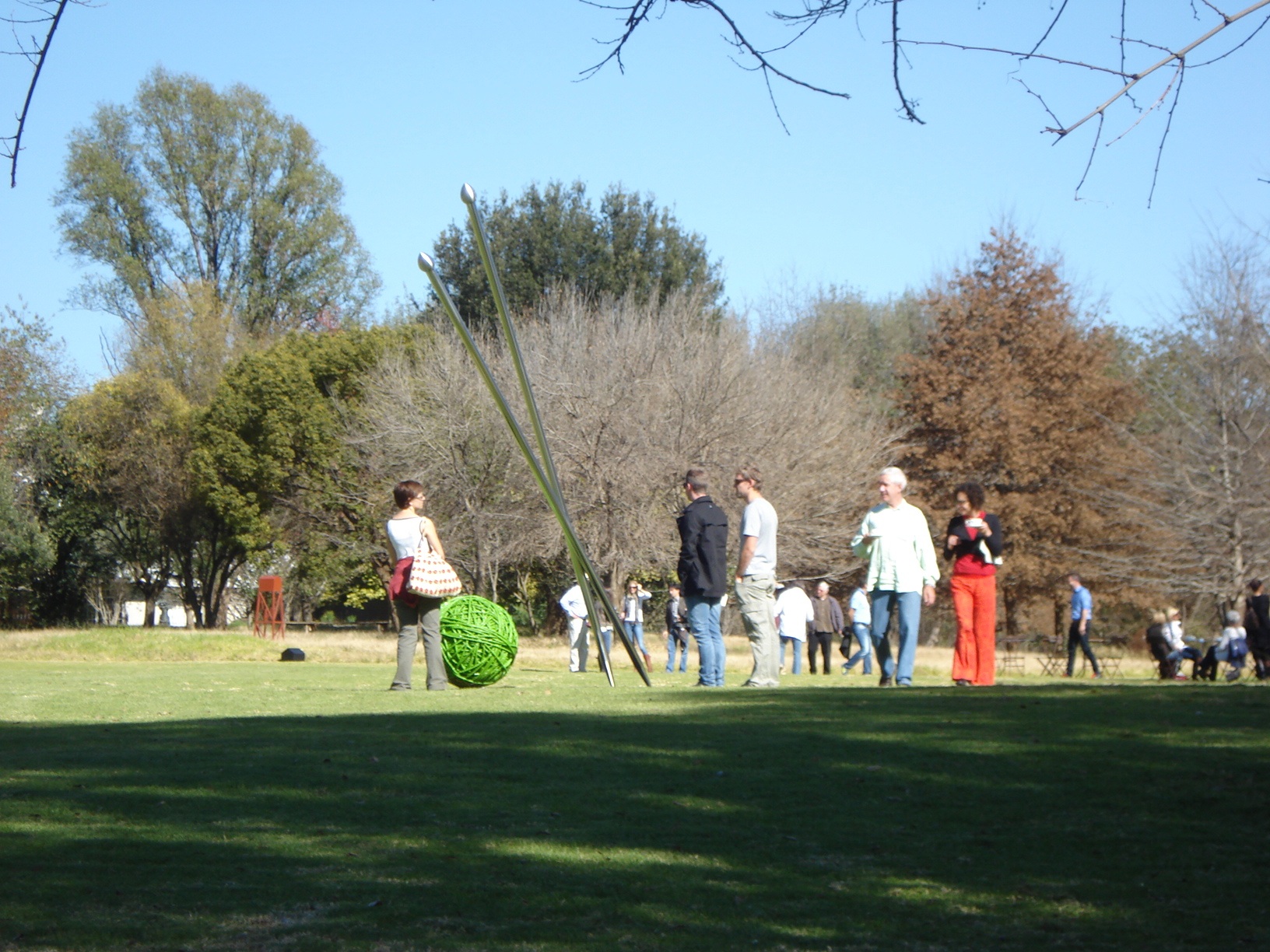 The sculpture formed part of a broader showcase featuring more than 50 works by South African artists, displayed across NIROX’s landscaped grounds of streams, lawns and mature trees. Visitors engaged with the artwork in unexpected ways — including children who delighted in imagining the sculpture’s giant ball of wool as a playful prop.