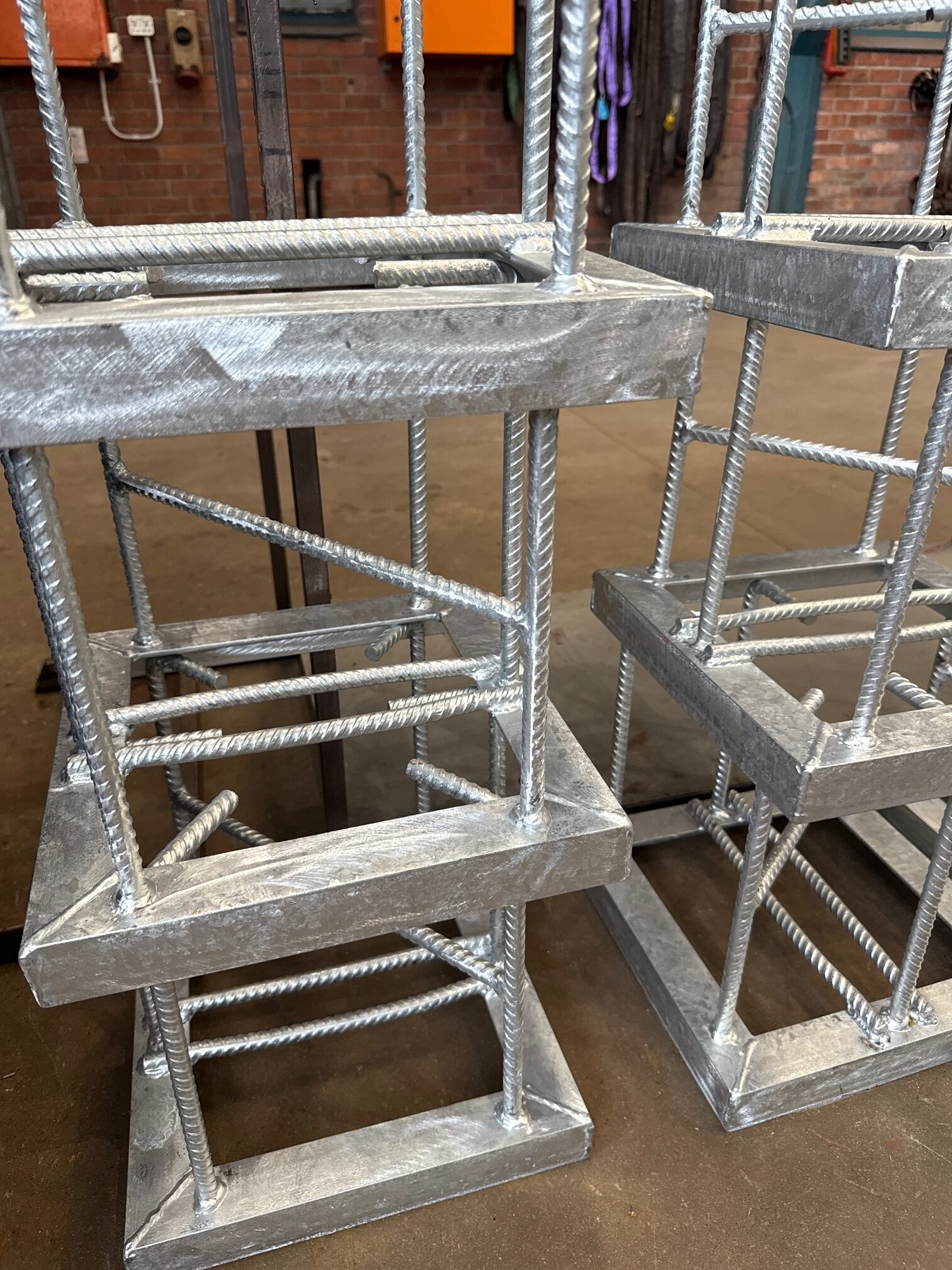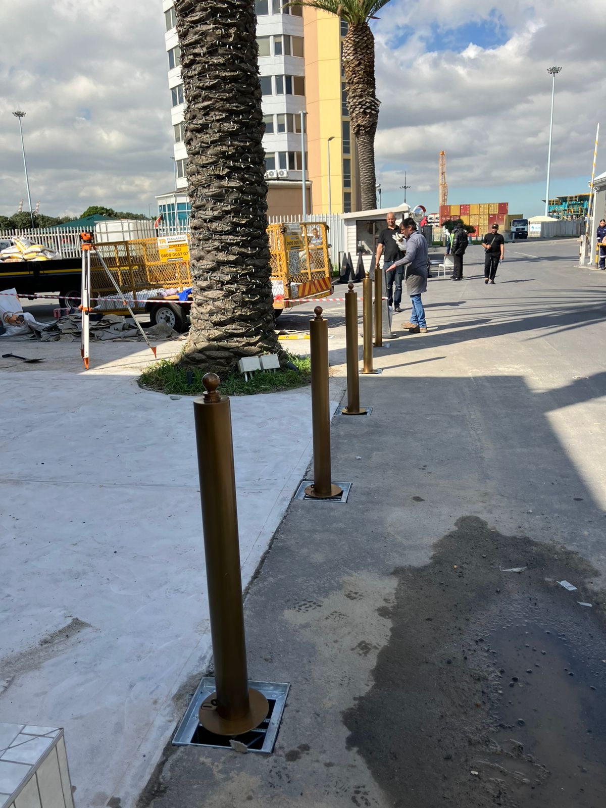 This project involved the fabrication of custom hot-dipped galvanised steel boxes that serve as the foundation for decorative brass bollards at a luxury beach bar and restaurant.