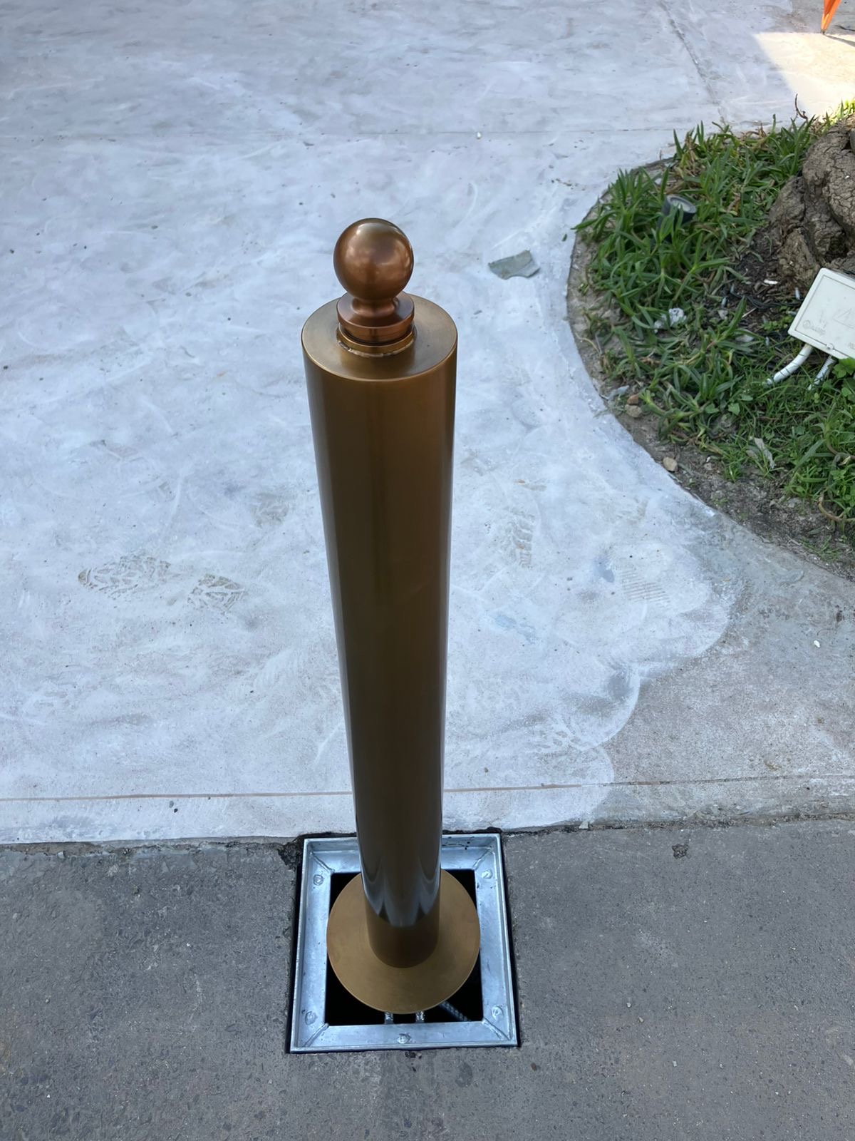 The bases were designed and manufactured to withstand outdoor conditions, ensuring long-term structural strength and corrosion resistance. Once installed on site, they provided the hidden durability needed below the surface, allowing the brass bollards above to serve as both a functional barrier and a striking architectural detail.
